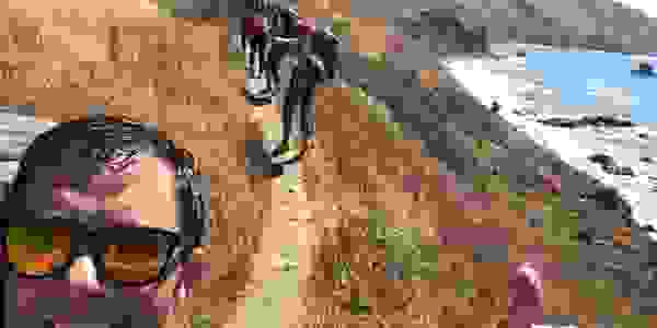 We tried to avoid this Easter Egg for a while by taking a trail that was just above the beach… until said trail ended. In case it is not 100% obvious, It’s pretty awkward to slide down a 20 foot loose gravel embankment with 40-60 lbs on your back. That said, it was perceived by our super-troopers to be fun